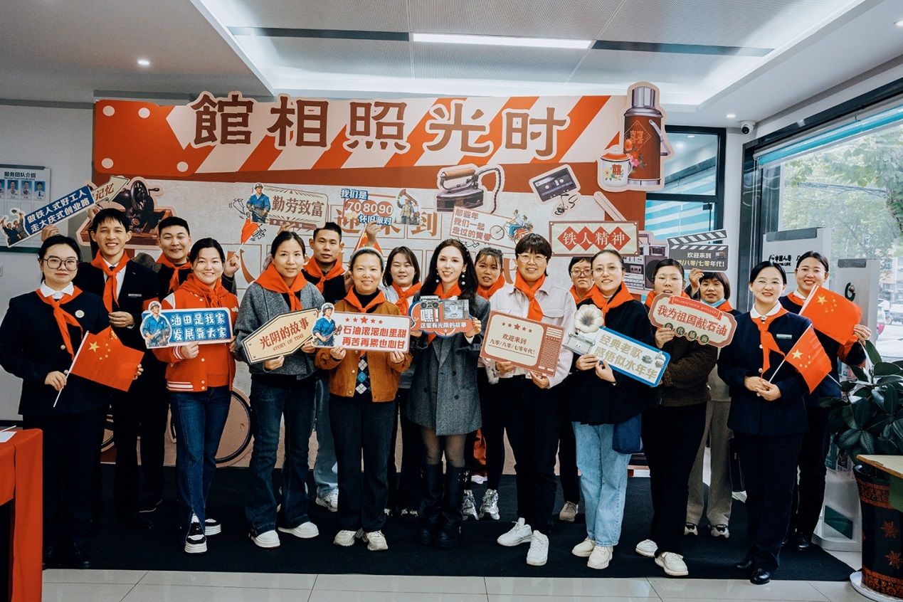 活动现场布置成一座“记忆驿站”,通过红袖章、红领巾等具有时代印记的物品,迅速营造出浓厚的怀旧氛围。在《时光签到·薪火永传》环节,参与者互相佩戴红领巾,并在记录南阳油田发展历程的背景墙前合影留念,重温从1971年“南5井”出油到建成200万吨产能的奋斗奇迹。