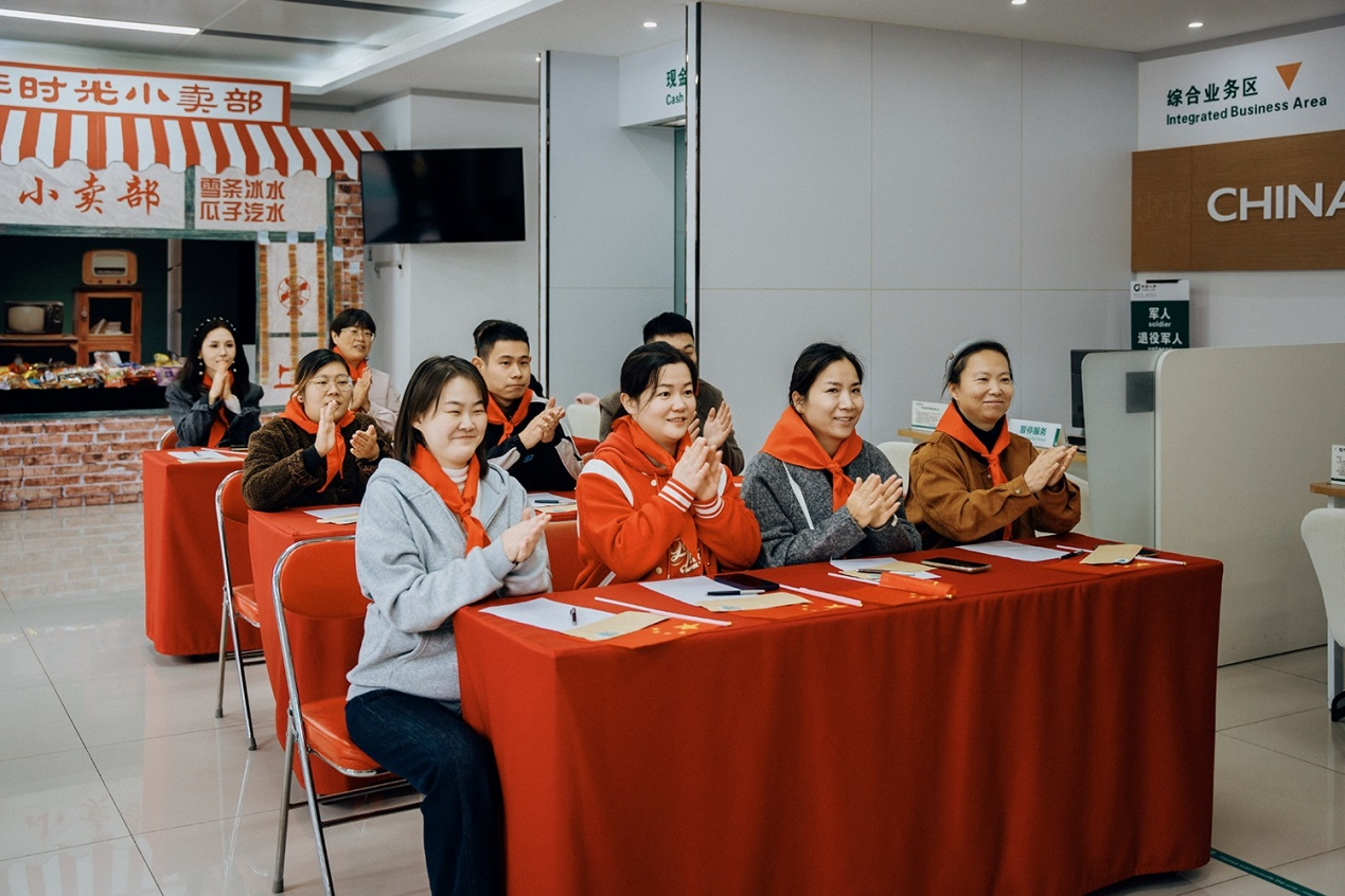 在《工人力量·唱响芳华》环节,全体人员齐声高唱《咱们工人有力量》,激昂的歌声与舞动的国旗交织,激发了年轻一代对历史的共鸣。随后,《体验柜面·今昔共赏》环节将南阳油田人坚韧不拔的“老黄牛”精神,与中国人寿从传统服务向“四位一体”客户体验中心的转型相联结,展现了服务理念的传承与创新。