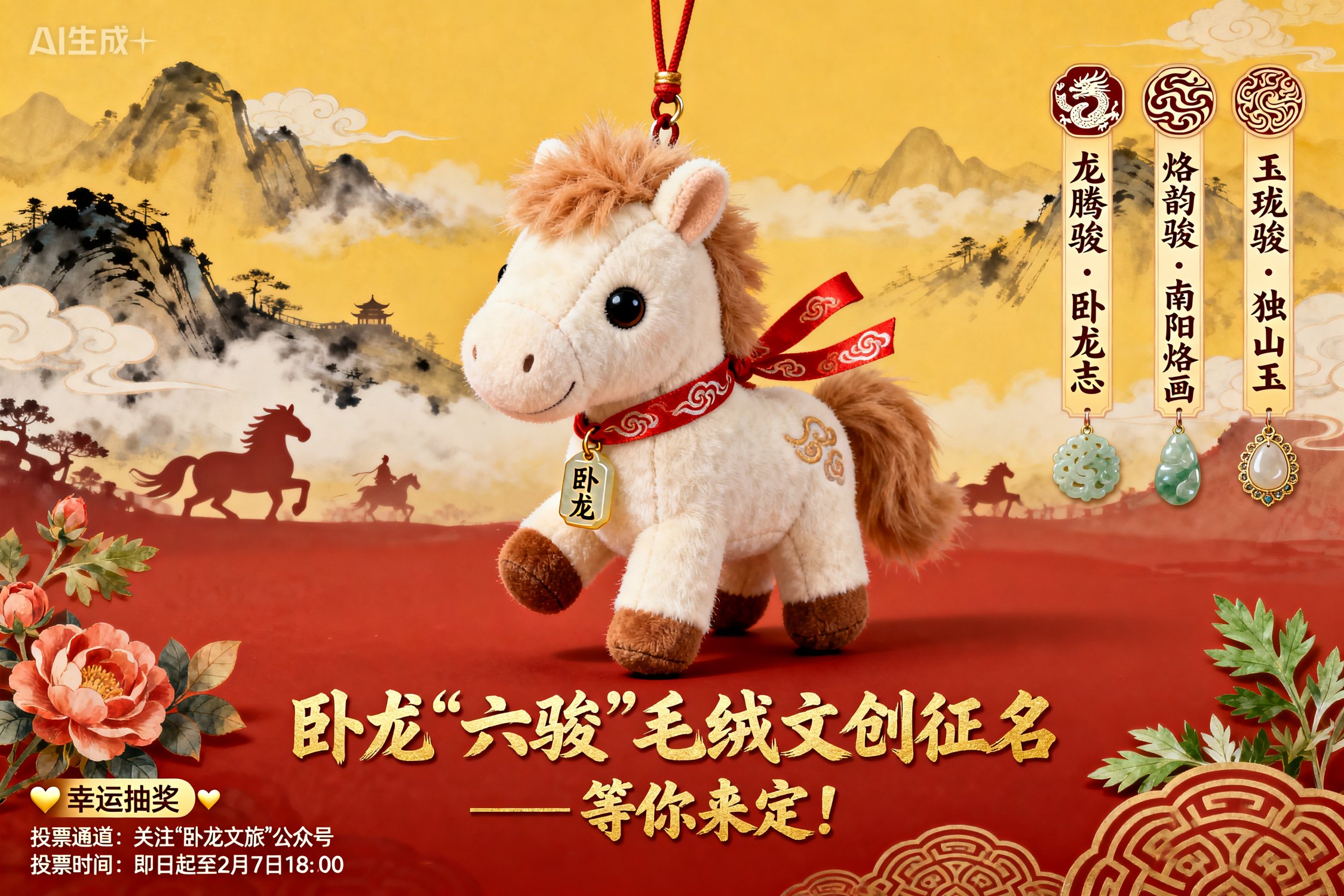 温馨提示:一方毛绒小马,托起的是一城文脉;一个温暖的名字,凝聚的是万千期待。卧龙“六骏”之名,交给你来定义!
