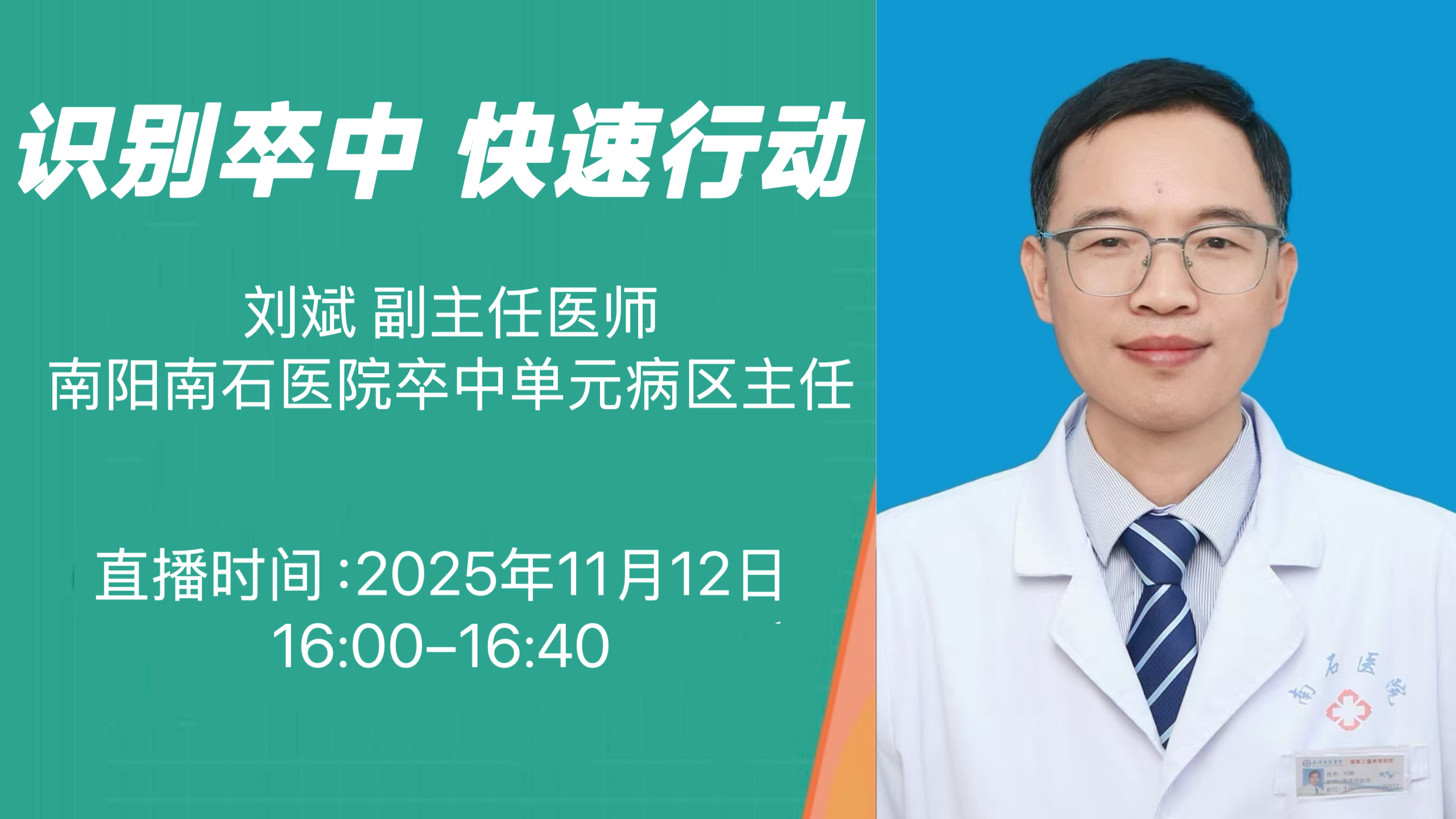 直播|南阳南石医院卒中单元病区主任 刘斌——识别卒中 快速行动
