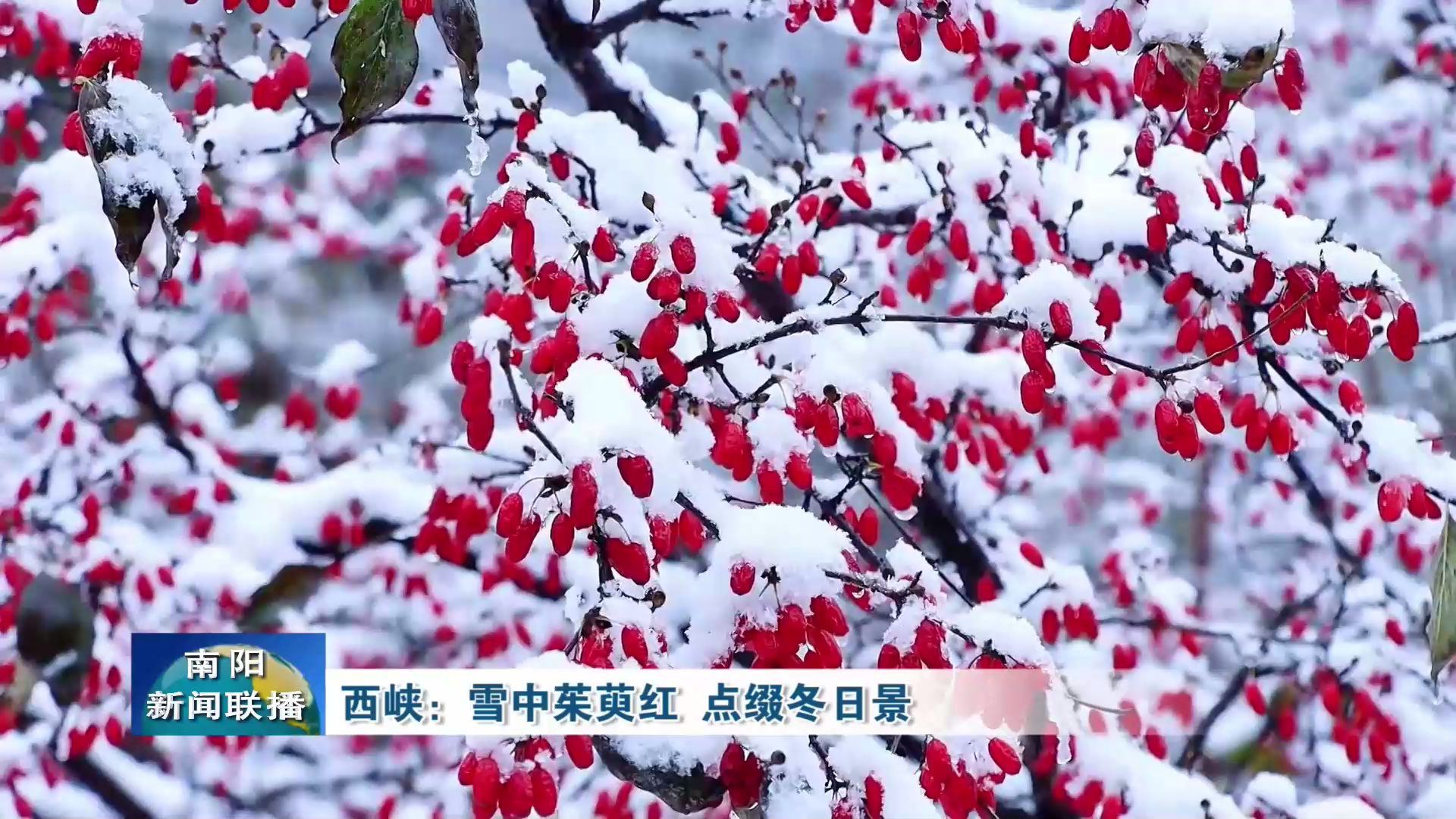 西峡:雪中茱萸红 点缀冬日景