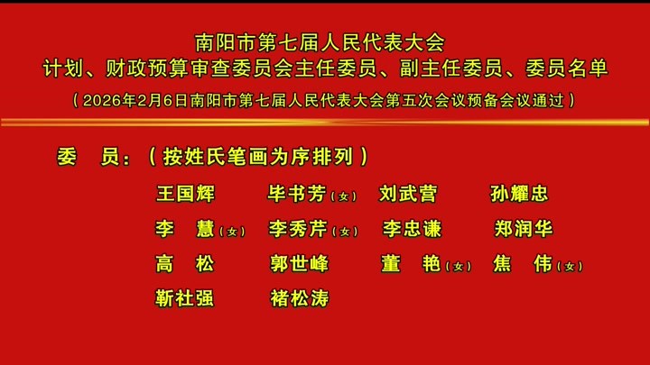 南阳市第七届人民代表大会 计划、财政预算审查委员会主任委员、副主任 委员、委员名单