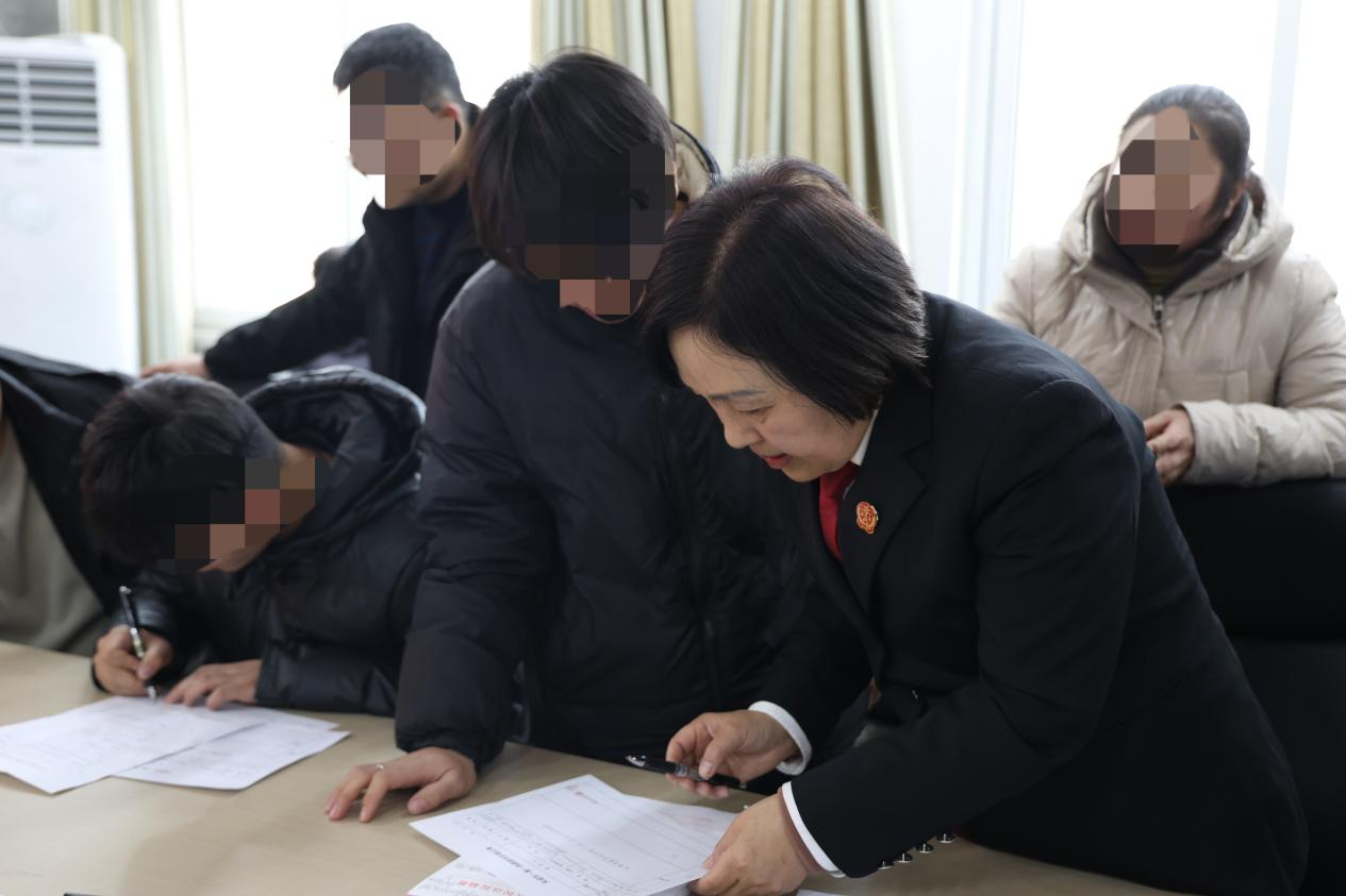 回访帮教过程中,王慧法官现场指导矫正对象认真填写“未成年一案一档跟踪回访登记表”,并与家属面对面交流,细致询问并记录孩子们案发后的心理变化及近期生活学习状况、社区矫正表现、未来发展规划等。随后,与会人员围绕部分社区矫正对象在就业、心理、生活等方面的实际需求展开讨论,提供针对性指导建议,并就相关帮扶措施进行现场协调,针对不同家庭的具体困难,各单位代表主动对接、积极回应,共同研究落实救助方案,合力引导“迷途少年”回归正轨、重回社会。