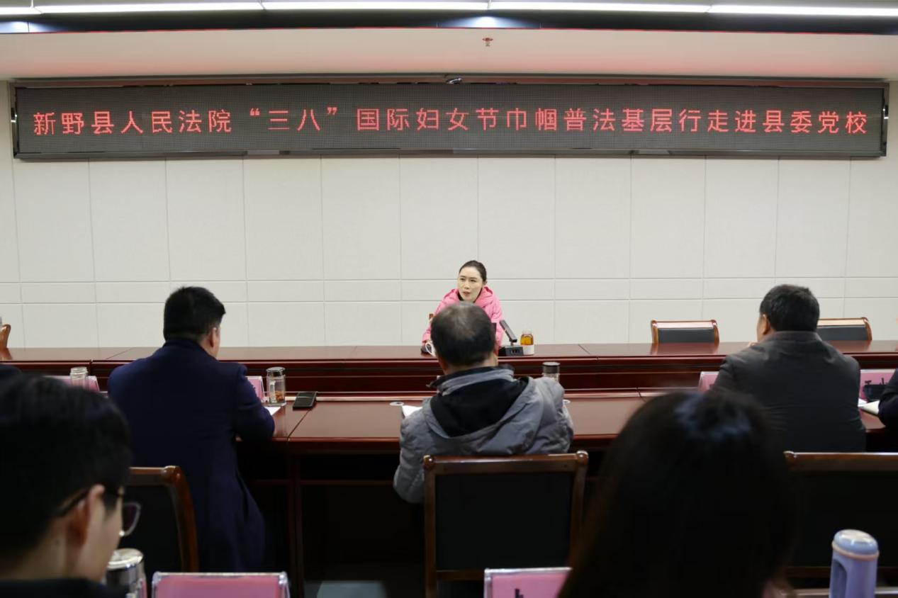春回大地,法润人心。为迎接即将到来的“三八”国际妇女节,把法律知识送到群众身边,切实维护妇女合法权益。3月5日,河南省新野县人民法院刑事审判庭副庭长、妇委会主任赵钦法官来到党校,开展以反对家庭暴力、警惕电信网络诈骗为主题的普法活动。