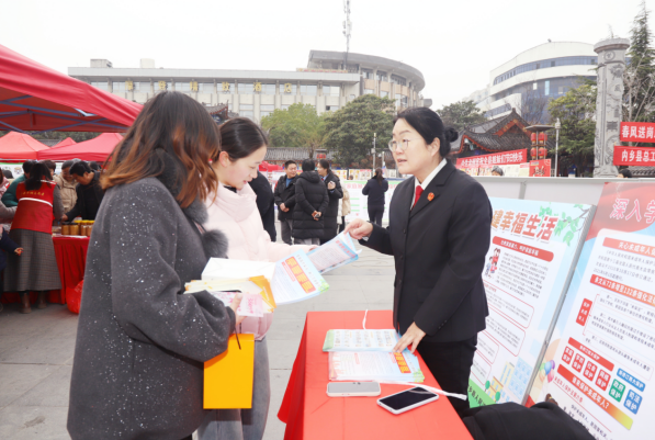 法院干警积极参与县衙广场“三八”国际妇女节巾帼志愿服务暨巾帼大集活动,以志愿之力传递法治温度。活动现场,干警们设立普法咨询台,摆放图文并茂的普法展板,向来往群众发放妇女权益保护、未成年人关爱等主题宣传资料,用接地气的“家常话”向群众解读法律知识,重点解答妇女群众在婚姻家庭、劳动就业、人身安全等方面的疑问,提供专业的法律指引和维权建议。干警们热情接待每一位咨询群众,用耐心细致的服务践行雷锋精神,成为巾帼大集中一道亮眼的风景线,切实让群众在逛大集、享服务的同时,学到法律知识、增强法治意识。