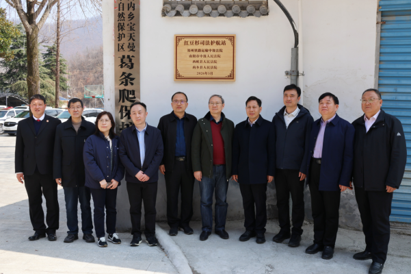 活动尾声,一行人前往作为宝天曼核心区前沿岗哨的葛条爬保护站,一块崭新的“红豆杉司法护航站”牌匾在此正式悬挂。该护航站的设立,标志着“司法+行政+科技”协同保护模式的常态化、实体化运行,未来将承担红豆杉保护法治宣传、线索对接、纠纷调解、生态修复指导等职能,成为守护宝天曼珍稀植物的“司法前沿阵地”。
