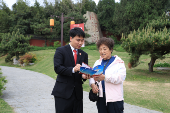 为深入贯彻总体国家安全观,增强广大群众国家安全法治意识。4月13日上午,南阳市卧龙区人民法院组织干警在卧龙岗武侯祠开展第十一个全民国家安全教育日普法宣传活动。