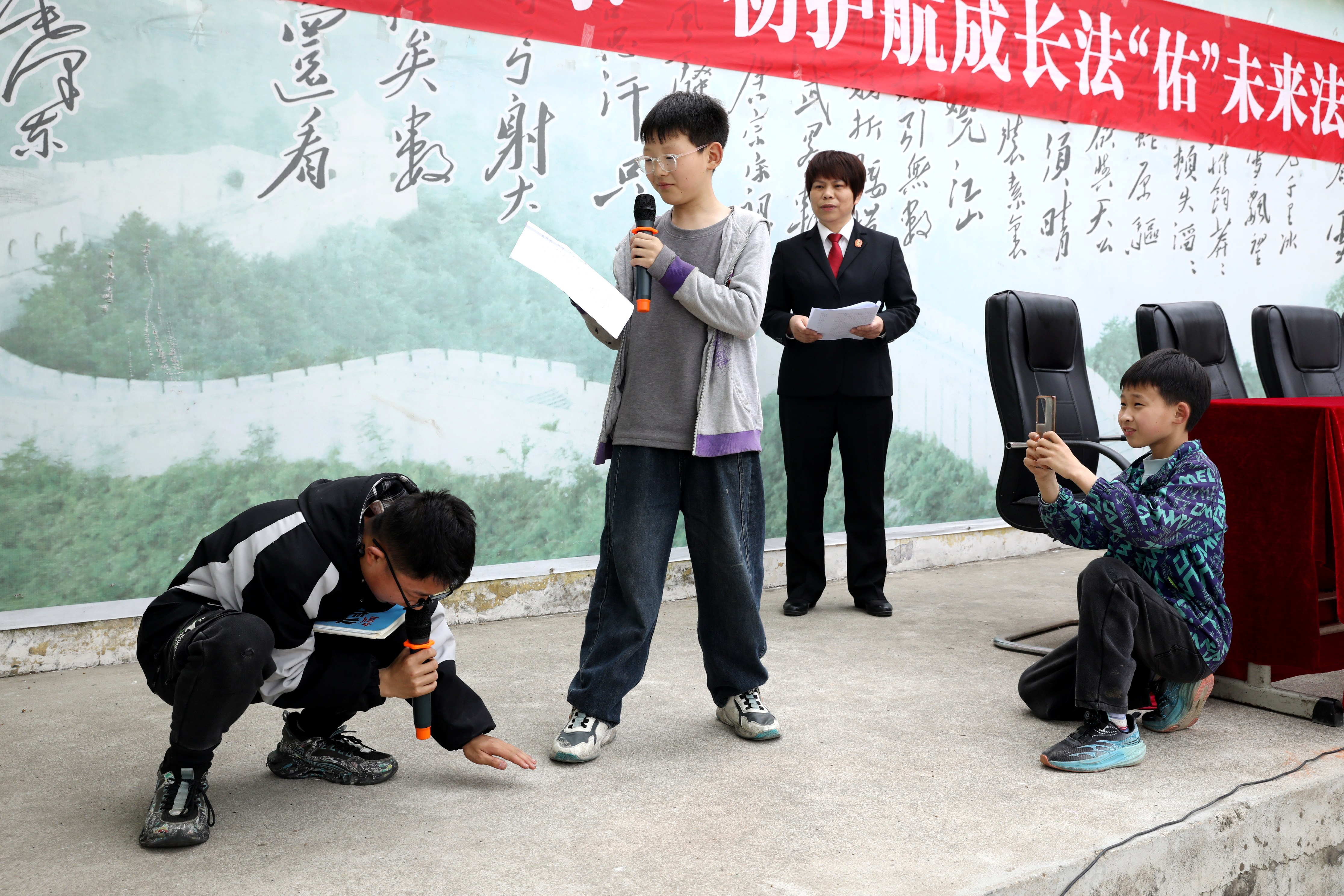 在穰东镇一初中,一场由学生现场演绎的法治主题短剧《拒绝校园暴力》拉开了法治报告会的序幕。短剧以真实校园案例为蓝本,贴近学生生活,令在场师生深受触动。
