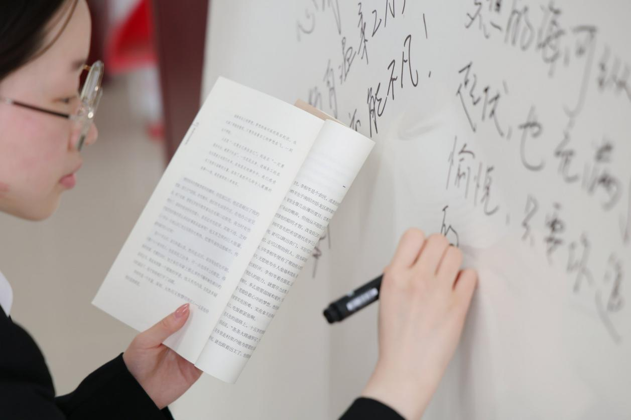 活动最后,青年干警代表在寄语板上郑重地写下自己的读书感言和工作誓言。青年干警们纷纷表示,要将阅读作为一种生活方式和精神追求,坚持在阅读中坚定理想信念、提升业务能力、涵养浩然正气,将学习成果转化为服务大局、司法为民、公正司法的生动实践,为推进书香社会建设贡献青春力量。(河南省新野县人民法院 刘柯君、王硕)