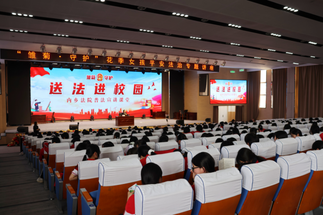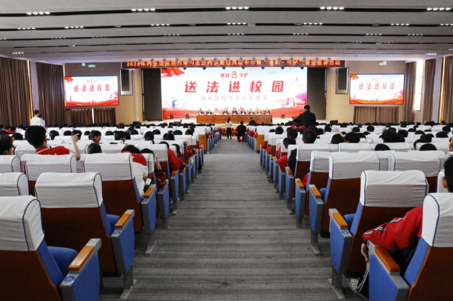 为抓实未成年人司法保护工作,做实校园常态化法治建设,从源头预防青少年违法犯罪、筑牢平安校园防线,4月24日,河南省内乡县人民法院走进菊潭学校高中部,开展“雏菊·守护”普法宣讲暨巡回审判进校园活动,用真实庭审实景普法,为全校师生送上一堂沉浸式、有力度、有温度的法治教育公开课。