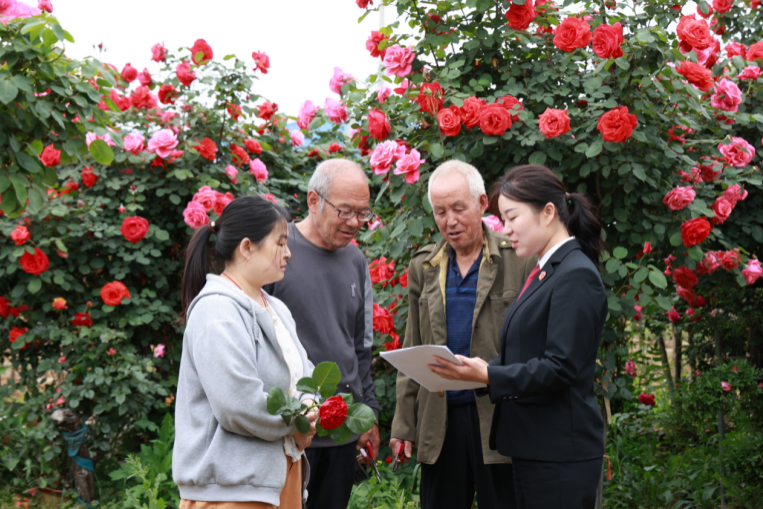 春风拂伏牛,月季绽卧龙。4月28日,正值月季销售旺季,南阳市卧龙区人民法院蒲山法庭干警走进辖区月季花种植基地,将司法服务送到花田一线。